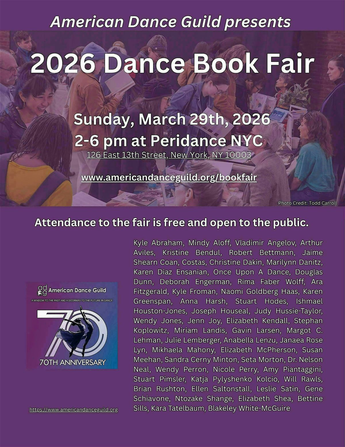This is a free event open to the community to browse recent publications in dance, buy new books, and chat directly with authors.
