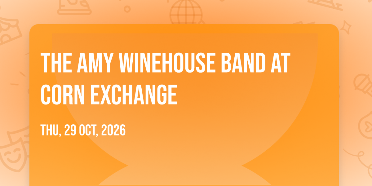 🌟 Step into a world of wonder at The Amy Winehouse Band at Corn Exchange, where extraordinary moments await! 🏛️ Located at Corn Exchange in dynamic Ipswich, EN, this event will become the talk of the town. 📅 Join us on October 29th, 2026 at 07:30 PM for a celebration that defies the ordinary. ✨ This curated experience brings together the best of entertainment, culture, and community spirit. Every detail has been thoughtfully planned to ensure an unforgettable experience for all our guests. 🎯 Take advantage of this opportunity to be part of something special. 🎊 Early registration is recommended as space is limited!