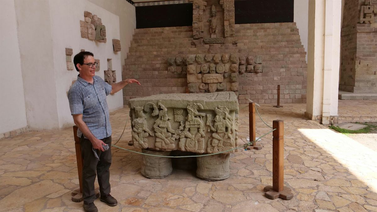 In this presentation, Dr. Sandoval will discuss his recent work on deciphering the Ancient Maya hand-sign script. The symbols of this special writing consist of arm and hand configurations held by figures in Maya texts. Texts otherwise consist of hieroglyphic writing and an array of iconography. In a recent article, he examined the hand signs of Altar Q, an 8th century sculptural text from the Classic Maya site of Copán (modern Honduras). Relying on a mix of analytical methods, he claimed that each of Altar Q’s hand signs are numerals with calendrical function. The publication stands as the first time a decipherment proposal for Ancient Maya textual hand signs has been supported and verified by multiple lines of evidence and peer review. The presentation will provide an overview of this initial decipherment, with the goal of demystifying the process, methodology, and verification.
