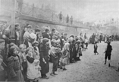 Angel Meadow is the “lowest, most filthy, most unhealthy, and most wicked locality in Manchester…full of cellars and inhabited by prostitutes, their bullies, thieves, cadgers, vagrants and tramps.”