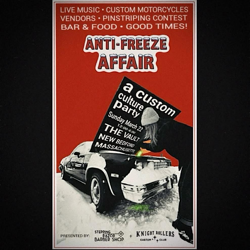 Showcasing Vendors, custom motorcycles, a sissy bar contest and Pinstriping contest! Full bar and food available for purchase. Get outta the freeze and come hang at The Anti-Freeze Affair!