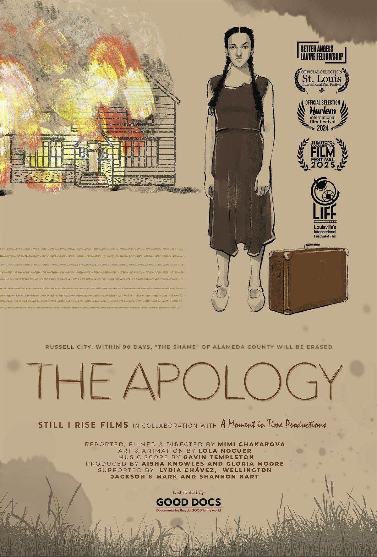 The Apology investigates an incident in the 1960s in which Alameda County and the City of Hayward dismantled the entire community of Russell City, pushing 1,400 residents out of their homes and off their land – all to claim the 200 acres for an industrial park. Sixty years later, the film tells the stories of more than twenty residents and their descendants. Using archival footage, animated photos, and illustrations, the film explores the historical significance of an apology. Several weeks after the very first community screening of The Apology, the Alameda County Board of Supervisors formally apologized for its role in the seizure and destruction of Russell City.