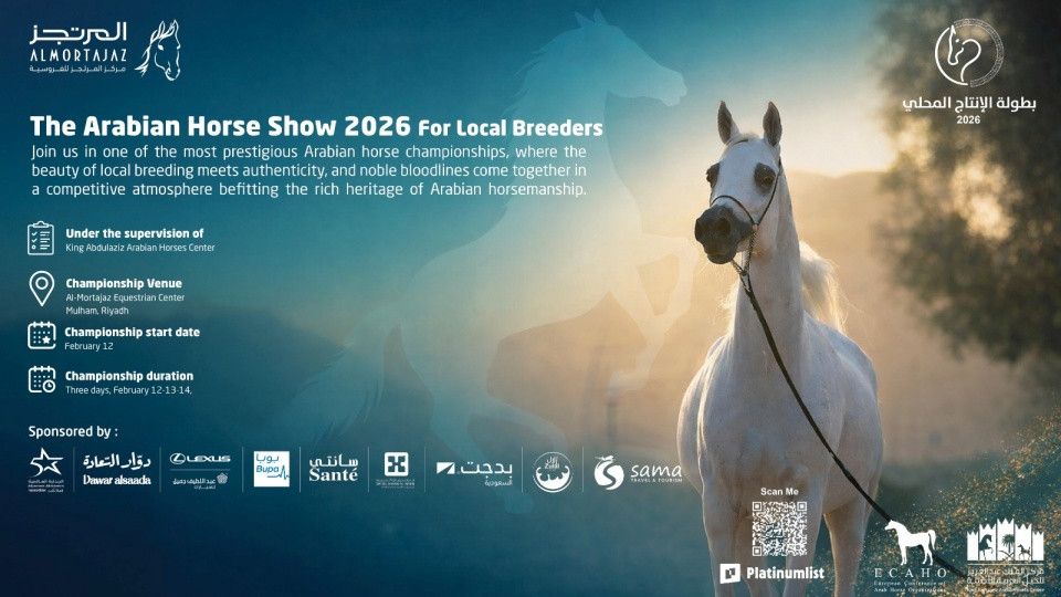 .. Under the patronage of His Royal Highness Prince Faisal bin Bandar bin Abdulaziz Al Saud — Governor of Riyadh Region — may Allah preserve him, the Local Production Arabian Horse Beauty Championship 2026 will be held at Al-Mortajaz Equestrian Center in Malham, Riyadh, standing out as one of the year’s most anticipated events for lovers of equestrian heritage and authentic Arabian beauty. Over three exceptional days, elite breeders and enthusiasts gather in a refined festive atmosphere where heritage meets entertainment.