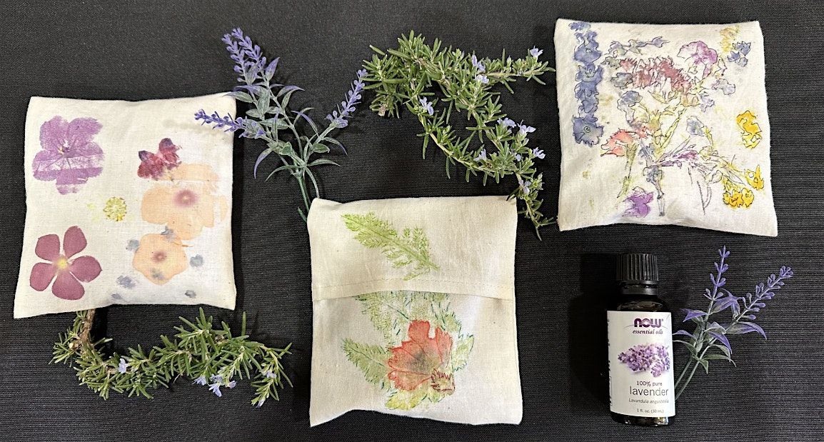 In this creative, hands-on workshop, participants will decorate aromatic herbal sachet pouches using natural materials and dried herbs. We will decorate sachet using a flower pounding method. This process transfers the flower shapes and colors onto your sachet pouch leaving a beautiful imprint on the material. Each person will take home 3 sachets scented with lavender, rosemary and rose. Sachets are perfect for drawers, closets, gifts or personal self-care.