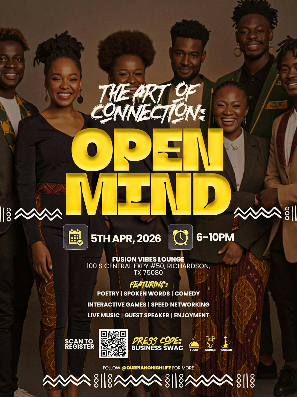 Join us for The Art of Connection: Open Mind on April 5th, 2026 (6PM–10PM) in Richardson, TX.