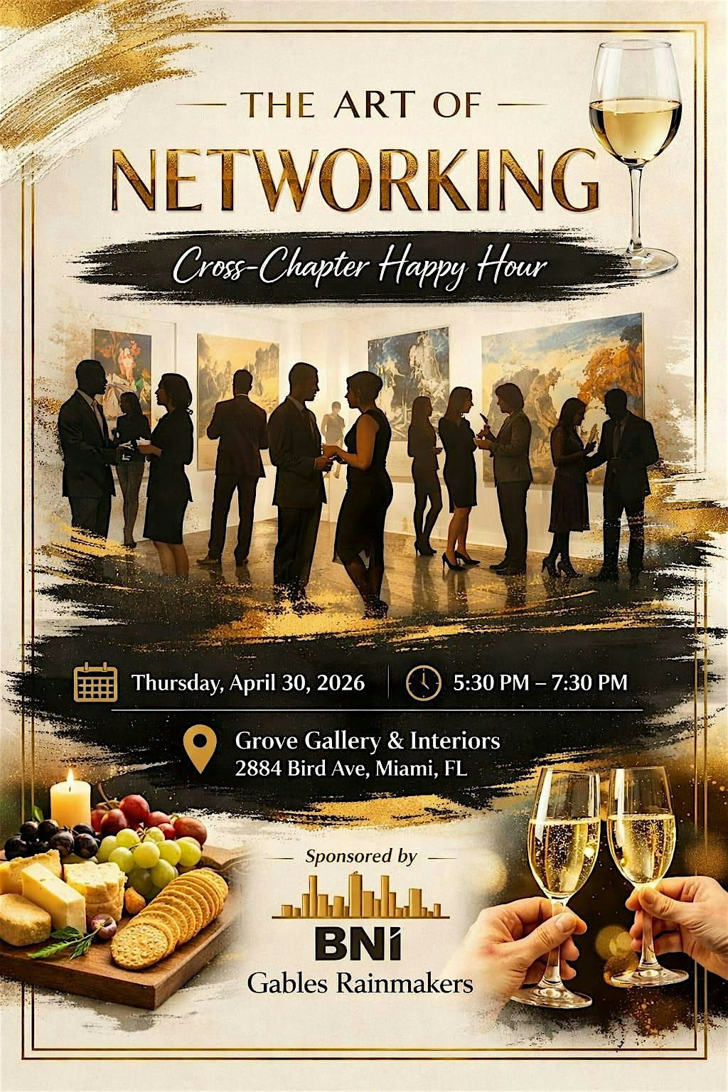 Join us for a BNI Cross-Chapter Happy Hour at Grove Gallery and Interioes. This event brings together members from multiple chapters for an evening of networking, mingling, and building meaningful business connections.