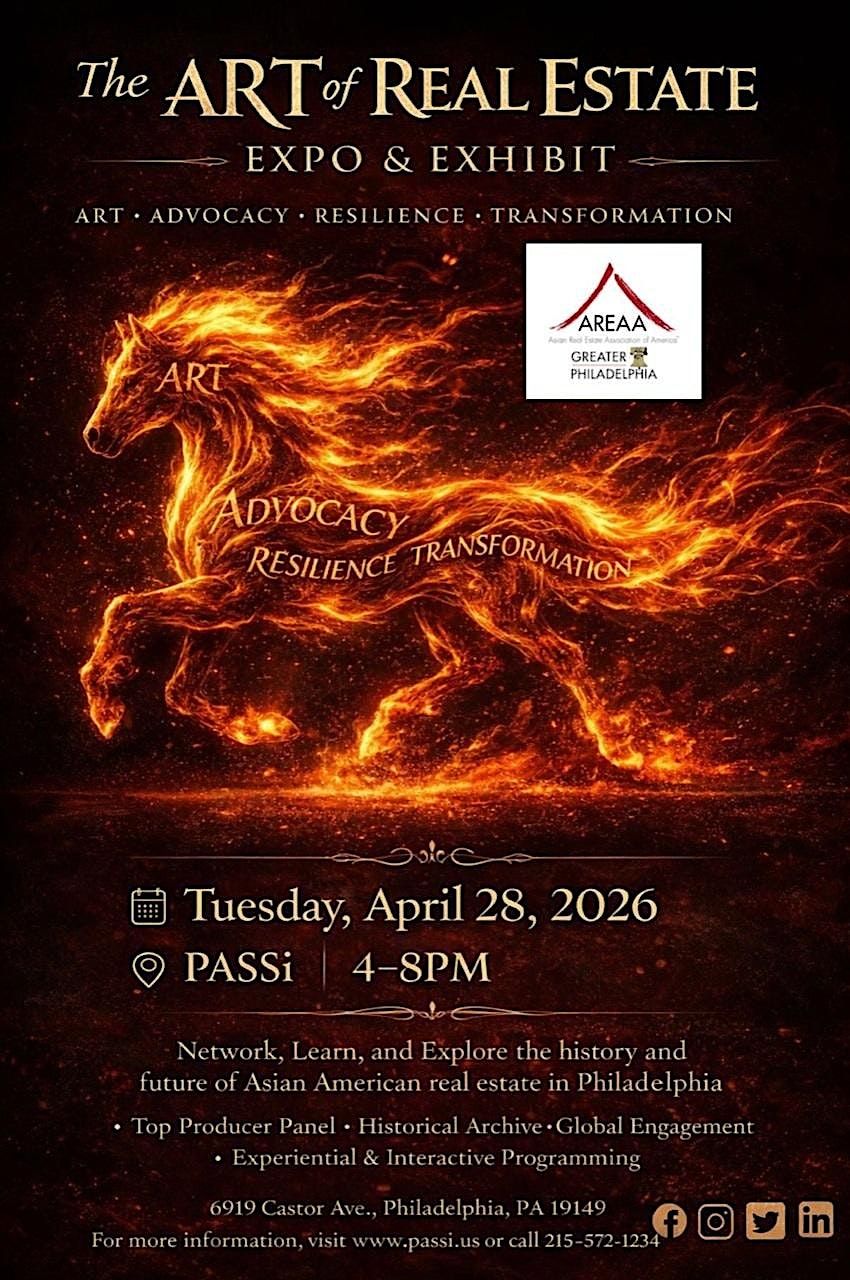 Welcome to the AREAA Greater Art of Real Estate Expo and Exhibit! Join us at Penn Asian Senior Services Campus (PASSi) for an afternoon event filled with networking, educational sessions, and opportunities to grow your real estate knowledge and wealth. Whether you're a seasoned investor or just buying your first home, this event is perfect for anyone looking to expand their horizons in the real estate industry. Don't miss out on this exciting opportunity to connect with like-minded individuals and learn from industry experts. See you there!