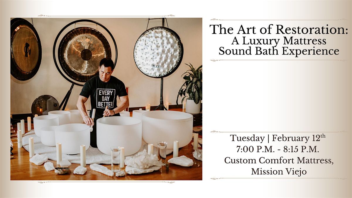 Join us for a unique collaboration with Custom Comfort Mattress in Pasadena with a special edition of our The Art of Restoration: a Luxury Mattress Sound Bath Experience!