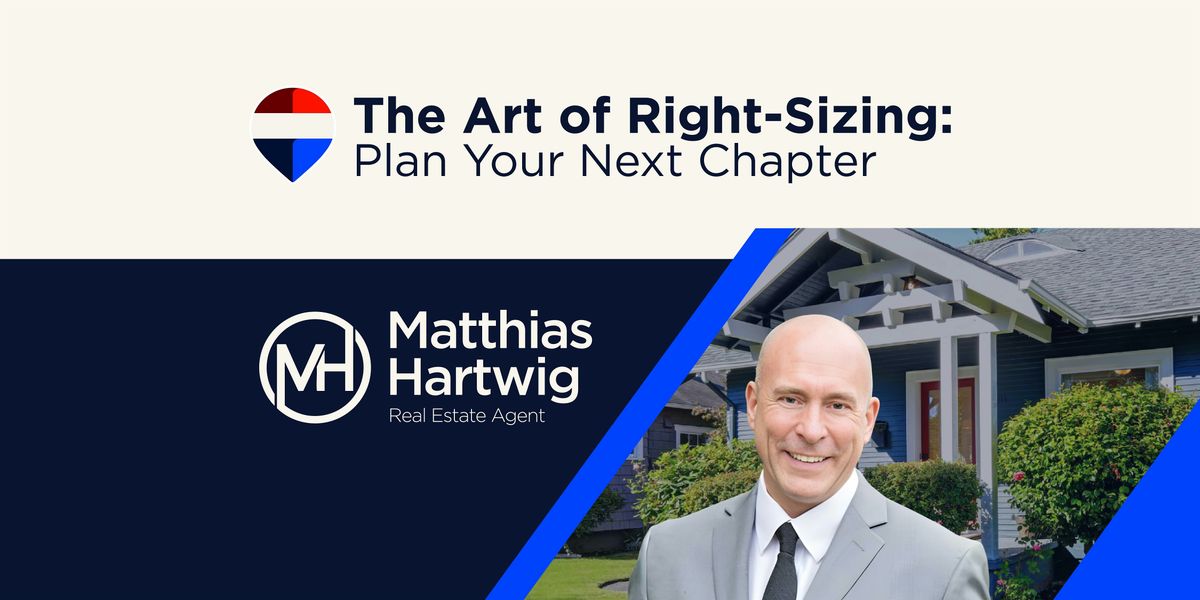 It is time to stop thinking about "downsizing" and start thinking about "right-sizing." Join Matthias Hartwig and a team of local experts for a morning dedicated to helping you find a home that matches your current lifestyle.