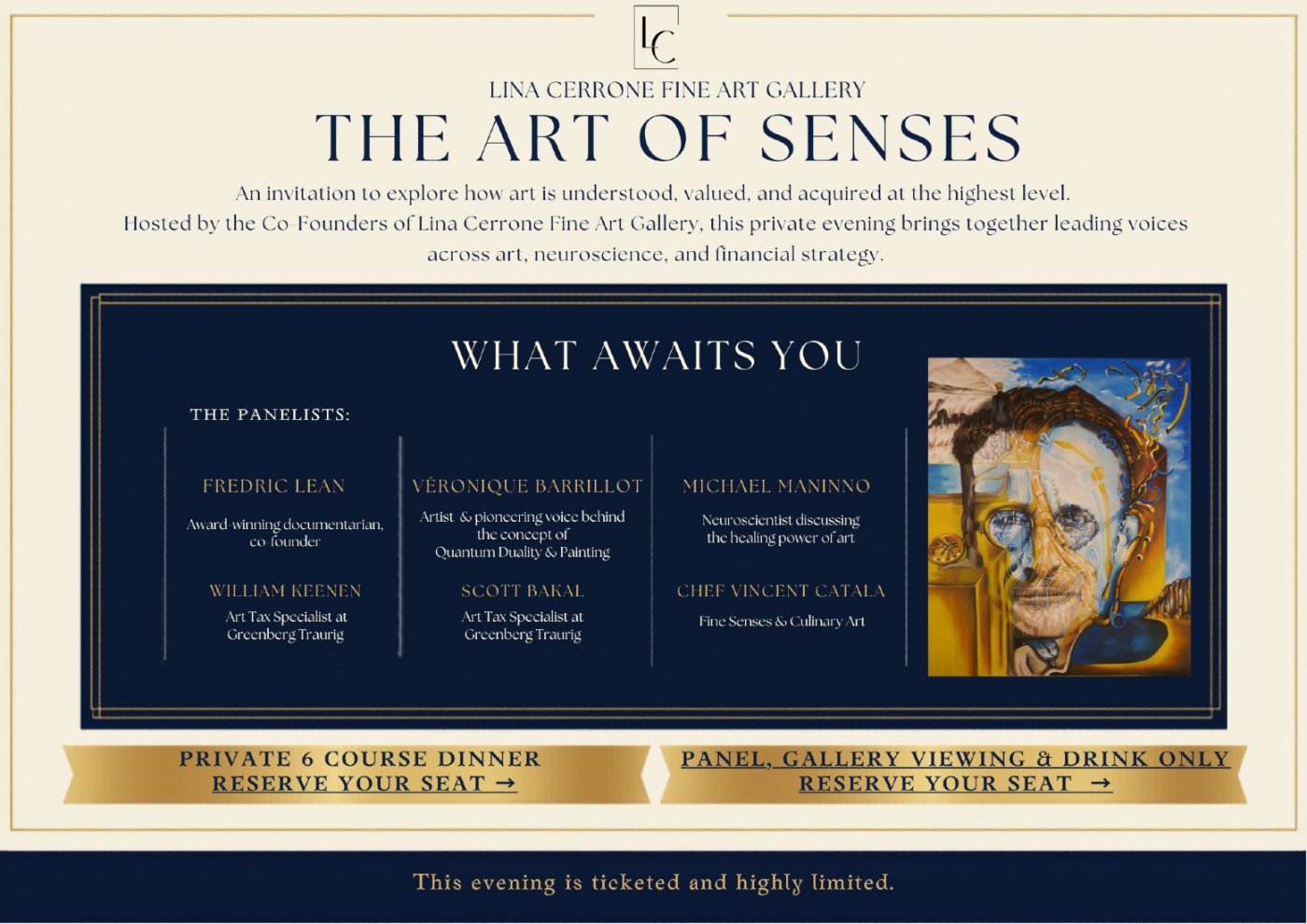 On Wednesday, April 29th the Co-Founders of the Line Cerrone Fine Art Gallery invite you to an intimate, invitation-only evening designed to encounter art’s transformative power across form, value, and experience.