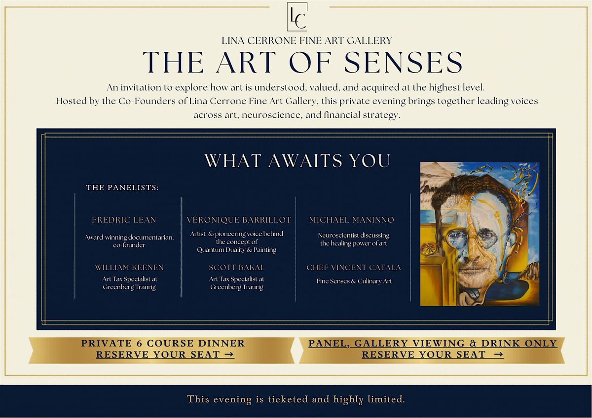 Join Artist, and Award-Winning DocumentaryFilmmaker Fredric Lean; visiting French artist and pioneering voice behind the concept of Quantum Duality, Véronique Barrillot; neuroscientist Michael Mannino; William Keenen and Scott Bakal, Art Tax Specialists at Greenberg Traurig, for a private panel exploring how art is understood, valued, and collected at the highest level.