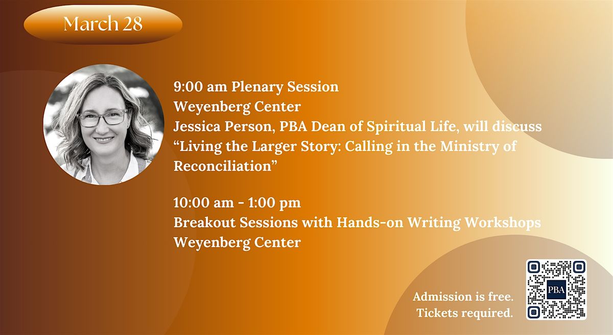 Jessica Person, PBA Dean of Spiritual Life, will discuss “Living the Larger Story: Calling in the Ministry of Reconciliation”