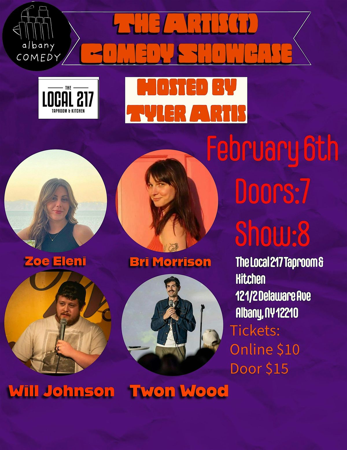 A comedy showcase run by a local comedian Tyler Artis at the Local 217 Taproom. Tyler brings 4 of his funniest friends in the capital region