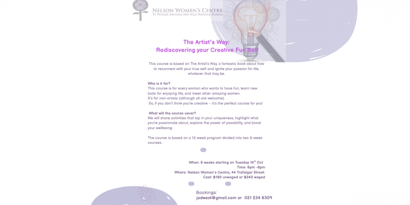Where: Nelson Women’s Centre 44 Trafalgar Street.
