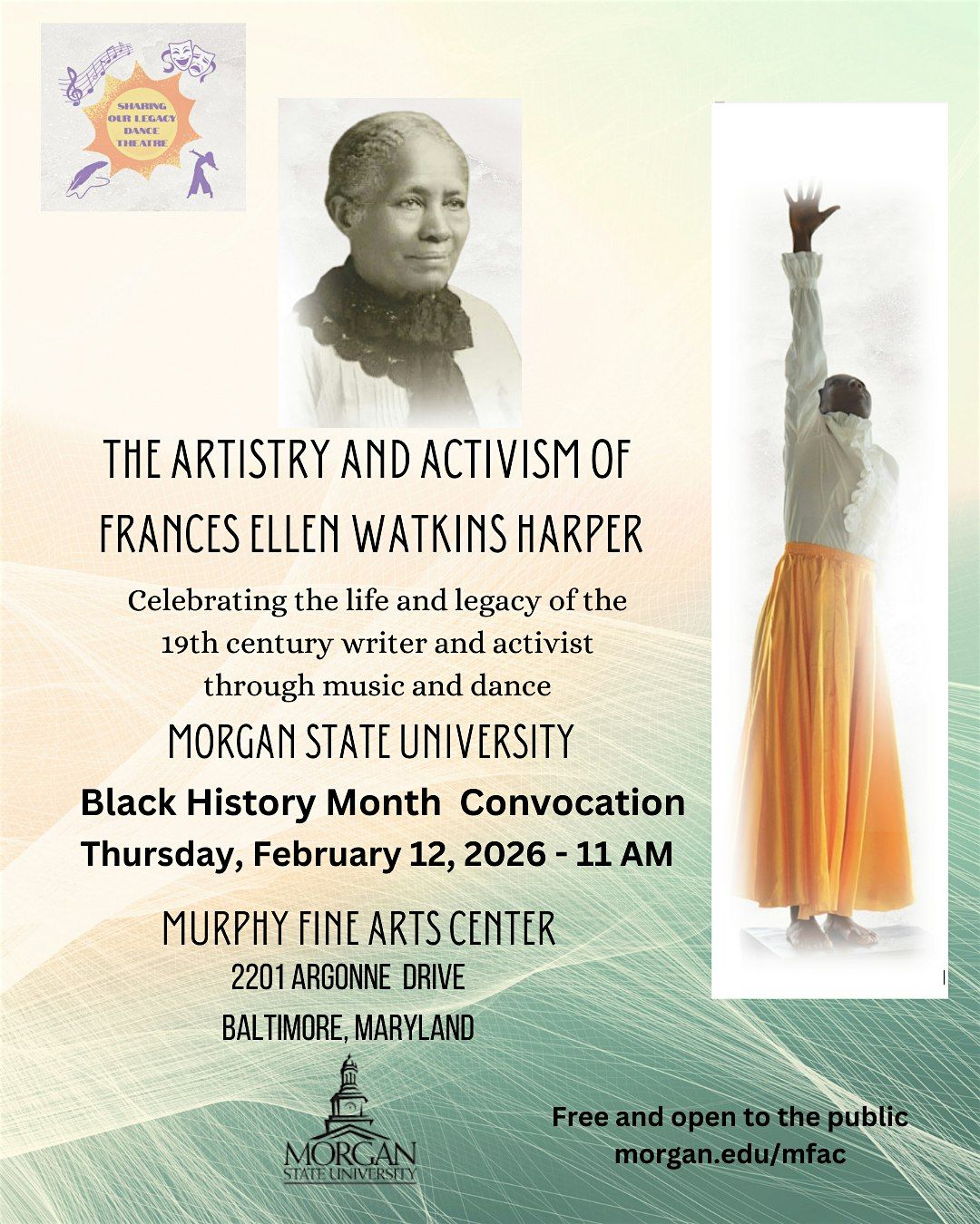 Join us for an inspiring in-person event celebrating the powerful life and work of Frances Ellen Watkins Harper. Explore her incredible journey as a groundbreaking writer, and fierce activist. This is your chance to connect with history, creativity, and change-makers through a multi-disciplinary performance by the Sharing Our Legacy Dance Theatre, Lynette Overby, Ph.D. Don’t miss out on exploring the legacy of a true trailblazer!