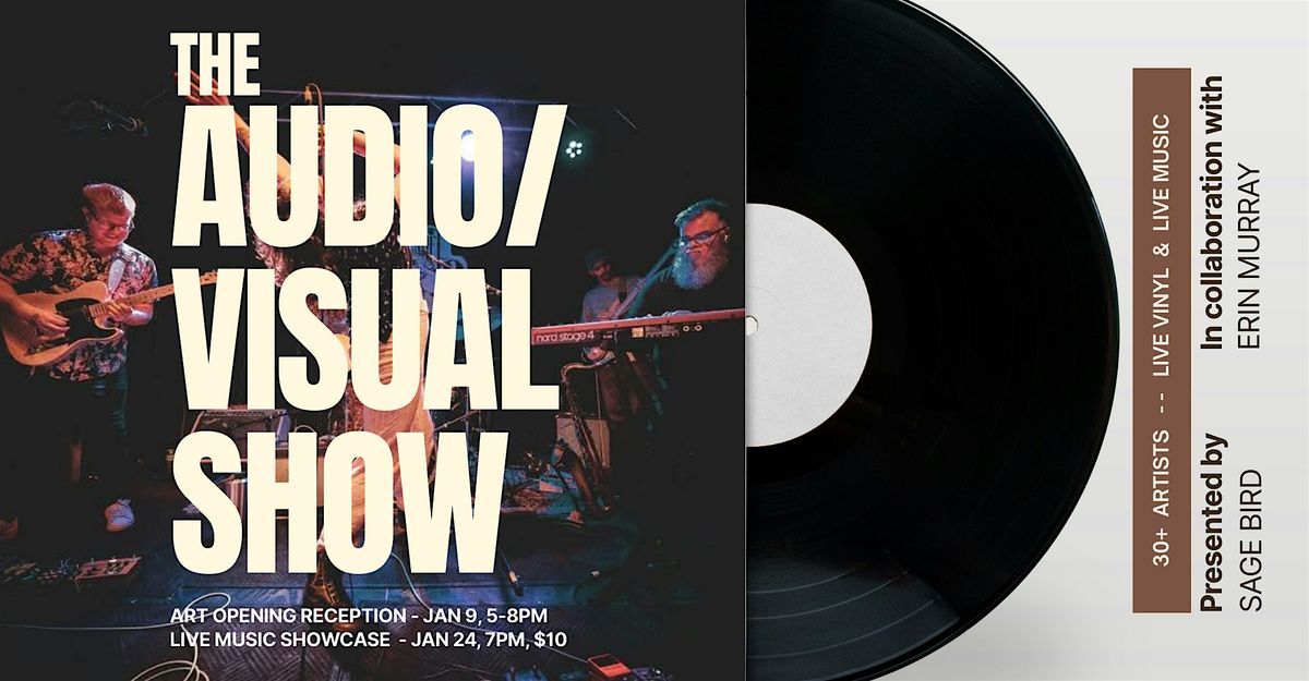 The Live Music Event in the North Wing Gallery at Sage Bird that features 12x12 Vinyl Cover-sized art pieces inspired by a piece of music.