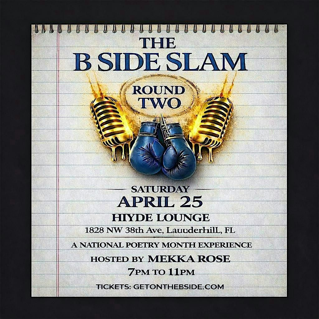 Celebrate National Poetry Month and 25 years of On the B Side with THE B SIDE SLAM: Round Two — a high-energy poetry slam experience bringing powerful voices, sharp bars, and competitive spoken word to the stage.