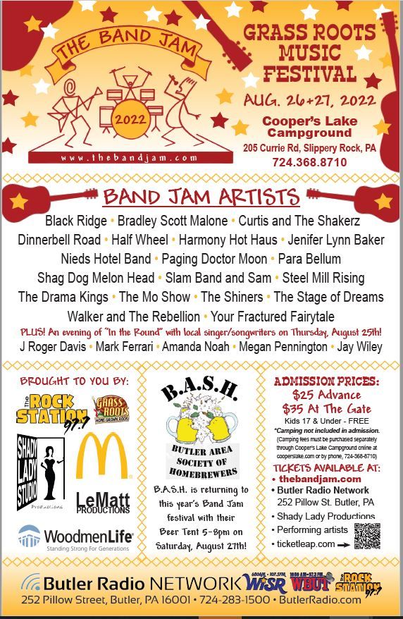 The Band Jam Grass Roots Music Festival, presented by WoodmenLife, returns to Cooper's Lake Campground August 26 & 27, with a singer/songwriter night on August 25 to kick things off.This family friendly music festival offers a great weekend of camping, fishing, biking, kayaking/canoeing, and the very best in local live entertainment.