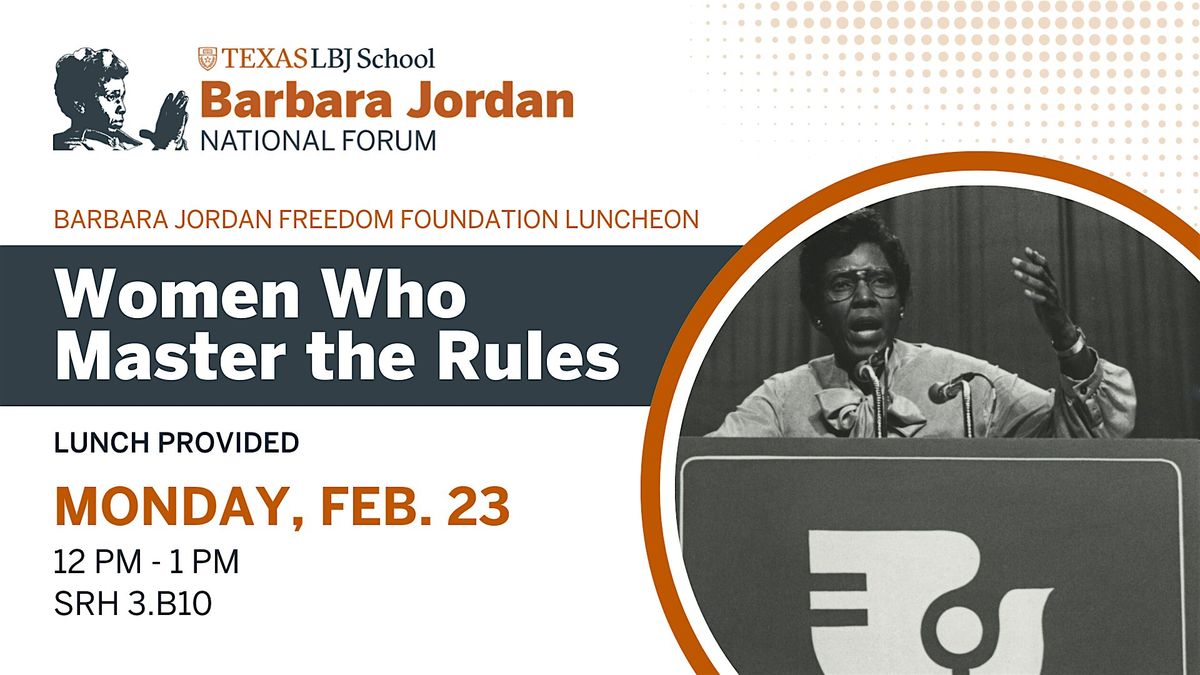 Woman Who Mastered the Rules is a the kickoff event to the Babara Jordan National Forum, sponsored by the Barbara Jordan Freedom Foundation. This event is inspired by one of Barbara Jordan’s most enduring lessons: “If you’re going to play the game properly, you’d better know every rule.”Rooted in this charge, the event centers the power of preparation, strategy, and principled leadership as essential tools for effective public service.