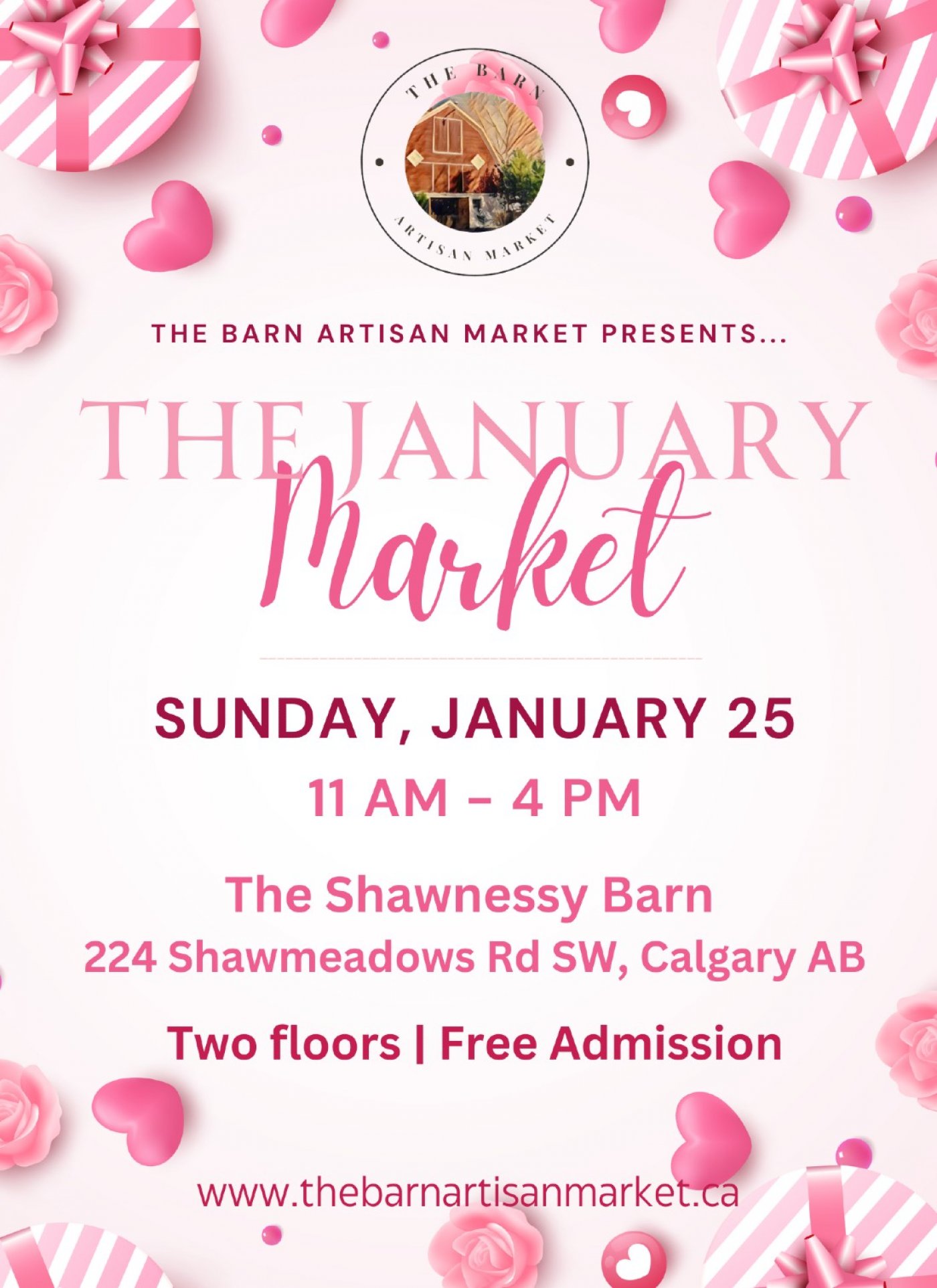Our first market of the year is taking place on Sunday, January 26th at the historic Shawnessy Barn. Come help us kick off the new year, as we feature a brand new line-up of local artisans, crafters, creators, and makers. Get out of the winter cold and into the cozy atmosphere of The Barn Artisan Market! You can even find a great gift for your Valentine while you're here. <3 There's two floors of vendors for your shopping enjoyment, and admission is always free!
