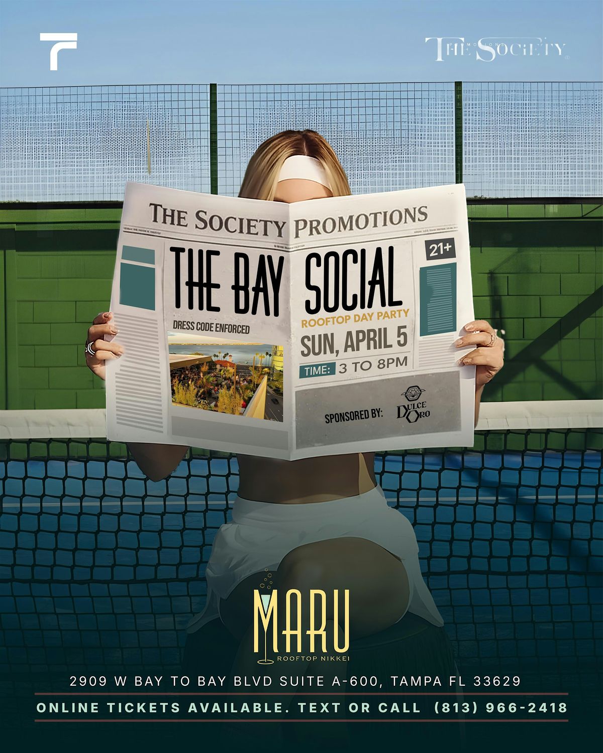 Step into a new level of daytime luxury as The Society Promotions & TampaLatest brings an exclusive rooftop experience to Tampa. Join us at Maru Rooftop for a high-energy day party overlooking the stunning skyline of Tampa Bay.