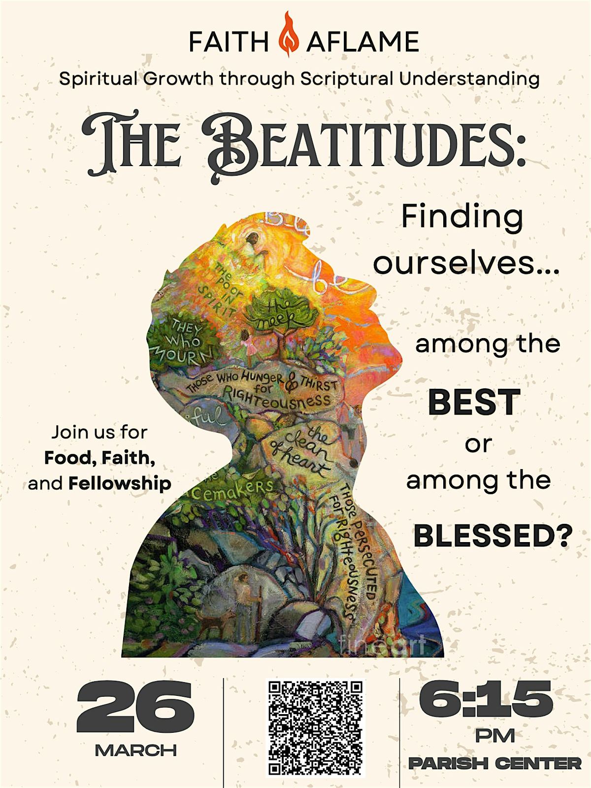 Come in person and dive deep into the inspiring teachings of the Beatitudes. It’s a warm, friendly gathering where faith meets everyday life, and every heart is welcome. Let's explore together how these timeless words open the door to hope, joy, and purpose. Don't miss out on this chance to connect, reflect, and feel uplifted!