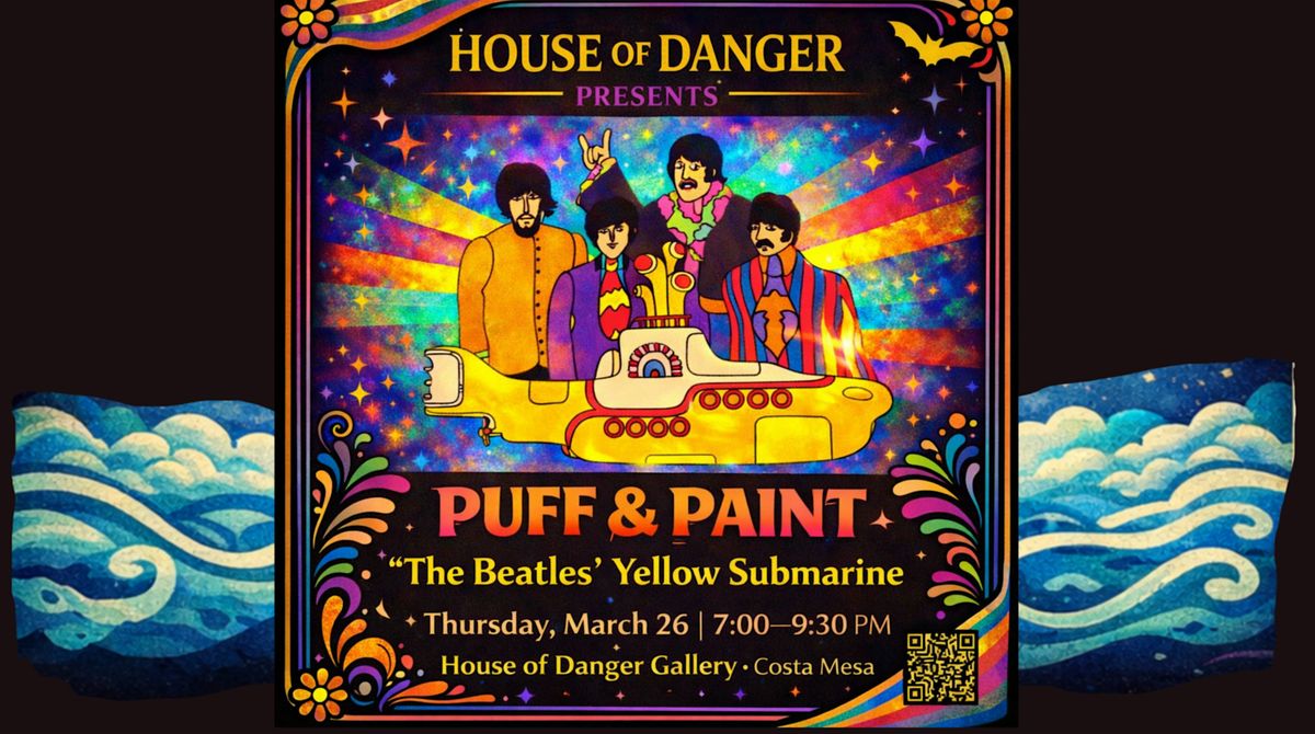 House of Danger invites you to a psychedelic night of creativity, music, and painting. Join us for Puff & Paint, where we’ll be creating a colorful painting inspired by The Beatles’ iconic Yellow Submarine.