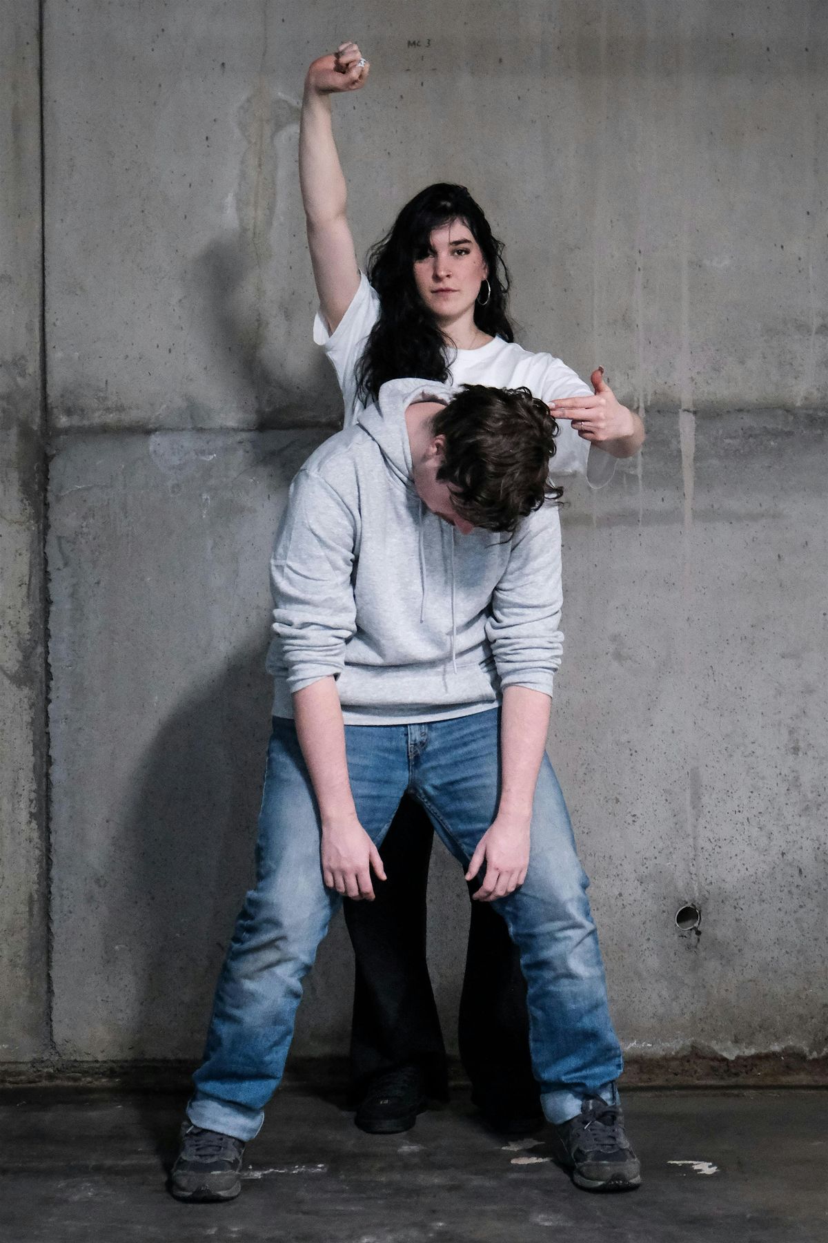 In a collaboration between dance, comedy and drama, this work seeks to illustrate the paradigm of a male role in the lives of women, and explores ideas of seeking validation, desperation, sexualisation and rejection of male attention.