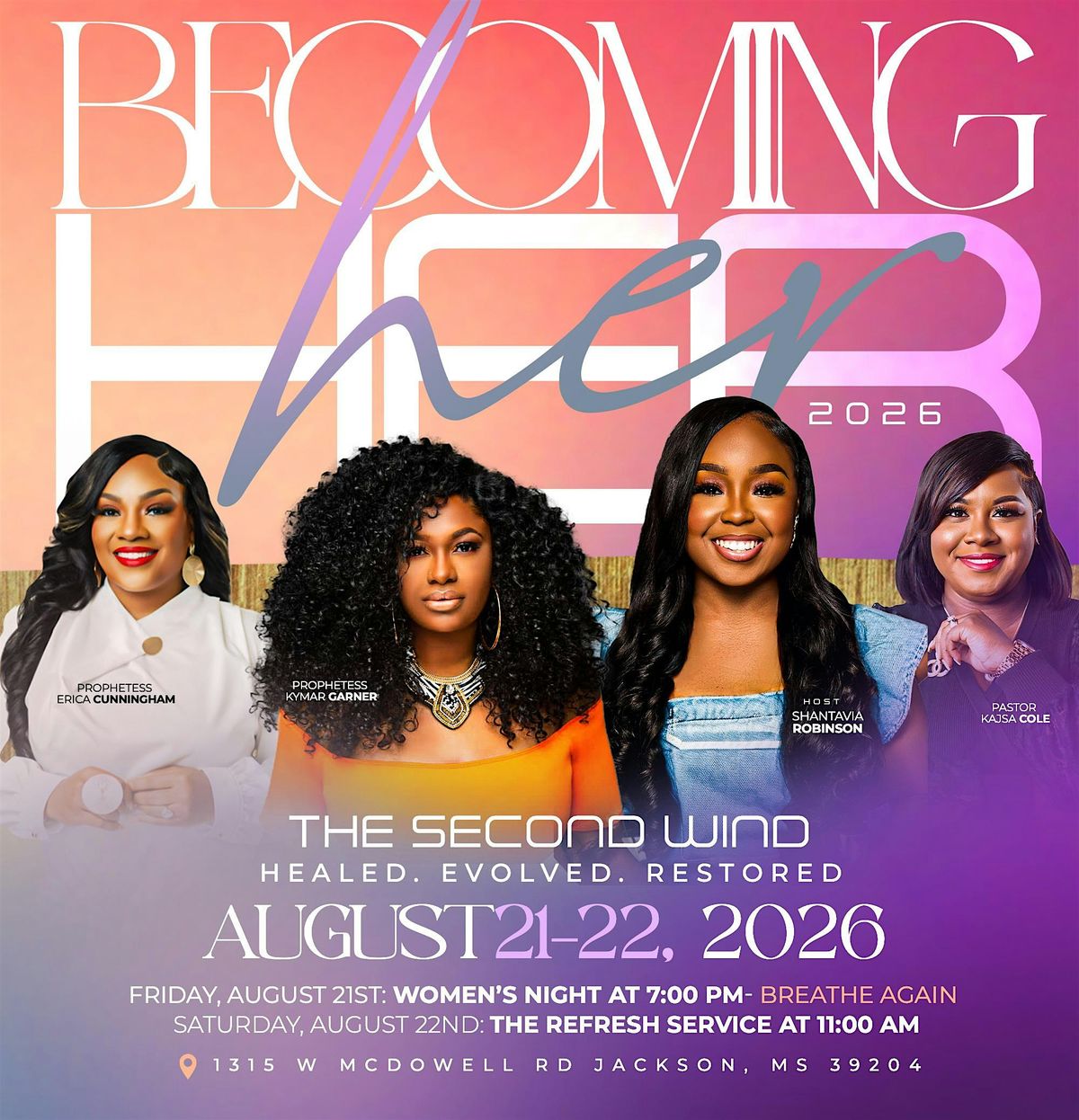 This is more than a conference, it is an encounter. Step into a life changing 2 day gathering designed for women who are ready to be refreshed, restored, and reignited. This gathering creates space for authentic worship, a powerful word, and prophetic moments that speak directly to your life. Come expecting to encounter God in a real way, receive clarity, and leave strengthened for what’s next. It’s time to get your wind back and step fully into who you’re becoming.