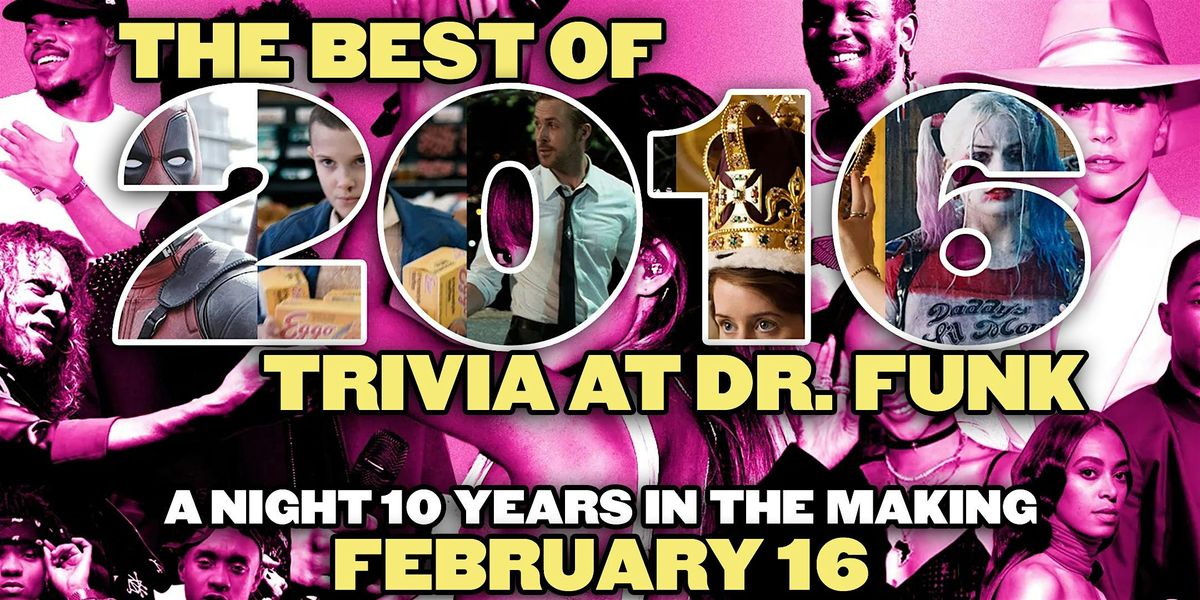 #BestOf2016 #2016Trivia #PopCultureTrivia #ThrowbackNight #TriviaNight #DrFunk #CostumeContest #NostalgiaTrip #RiskyQuizness 📼✨🎉