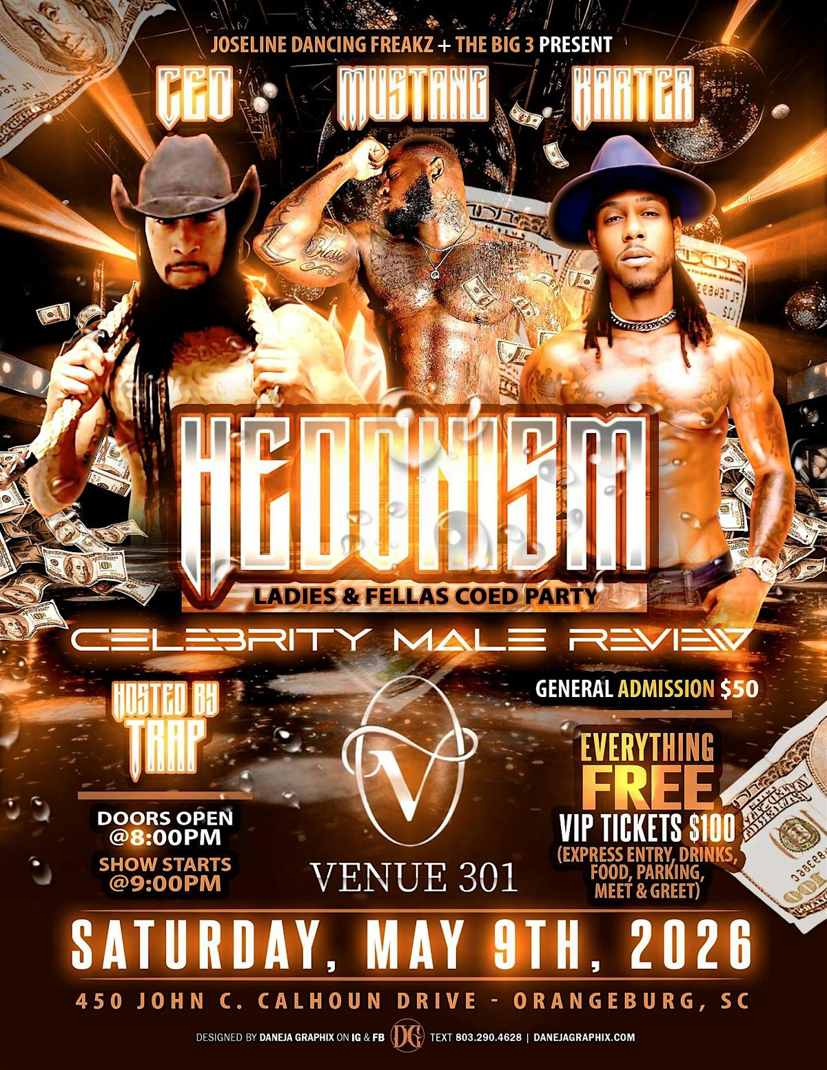 Get ready for an unforgettable night with The Big 3 bringing you Hedonism live and in person! Dive into a world of fun, freedom, and full-on vibes. This is your chance to experience something out of the ordinary—no screens, just pure live energy. Don’t miss out on the party of the season!
