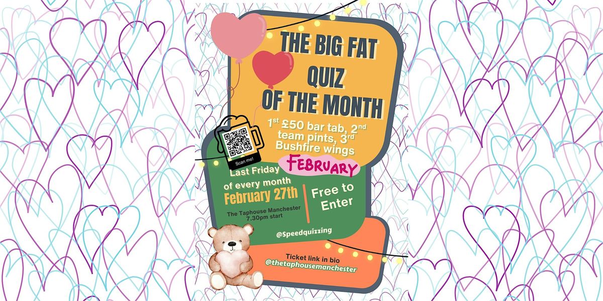 Welcome to The Big Fat Quiz of the Month! Join us for a fun-filled evening of trivia, laughter, and great drinks at The Taphouse Manchester. Test your knowledge on a variety of topics and compete with friends for the ultimate bragging rights. Don't miss out on this exciting in-person event - it's the perfect way to kick back and unwind after a long week. See you there!