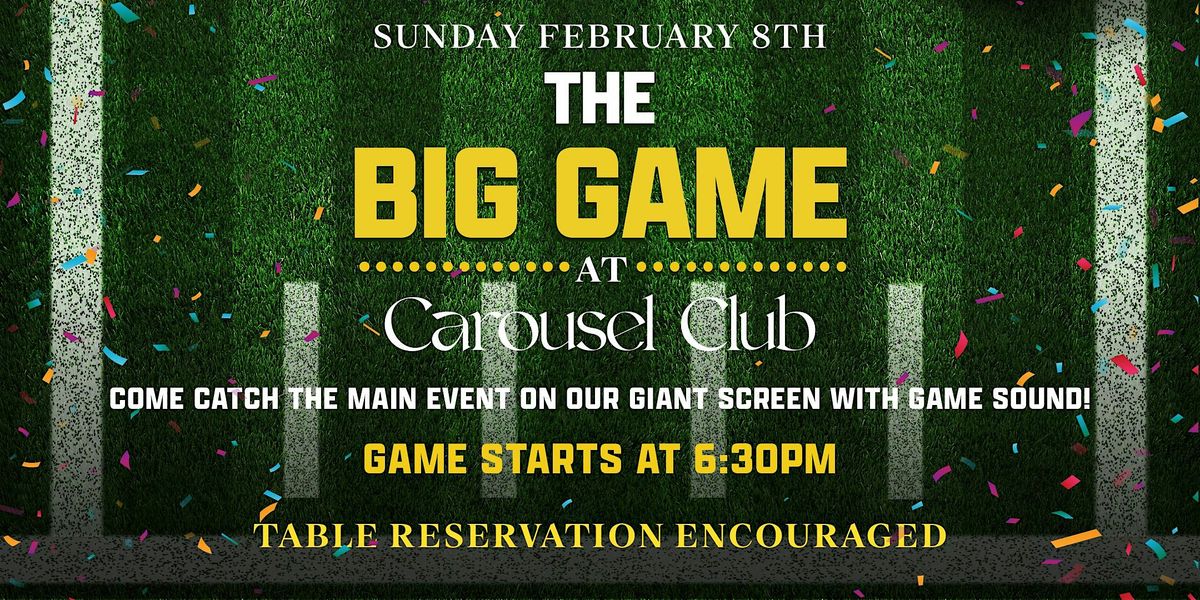 Sunday, February 8th, we’re having a magical Big Game watch party at Carousel Club. Catch the MAIN EVENT LIVE on our GIANT screen and witness all the excitement in an electrifying atmosphere- from GAME SOUND during the main event, to music during commercial breaks.