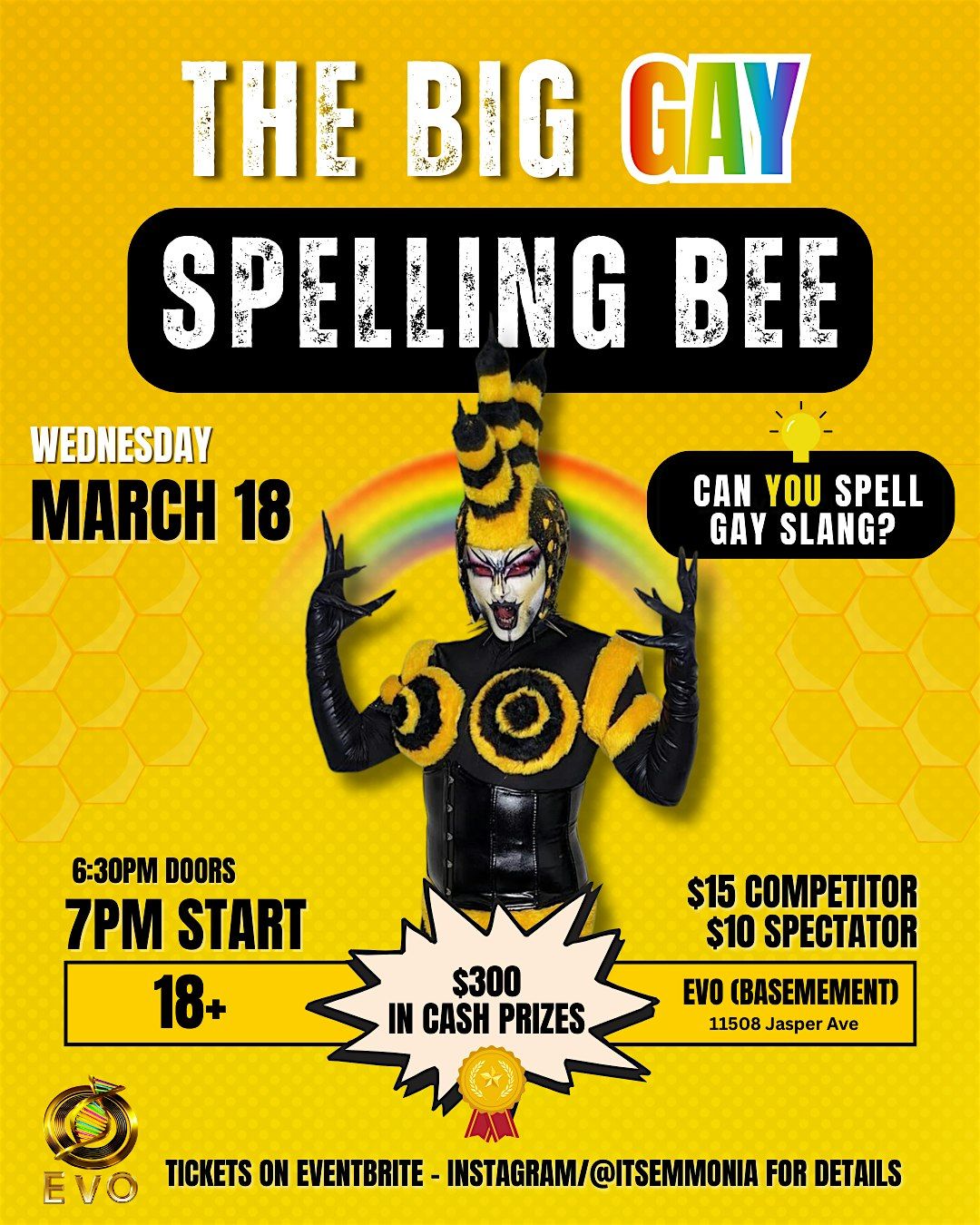 Welcome to THE BIG GAY SPELLING BEE hosted by YEG Drag MonSTAR Emmonia!