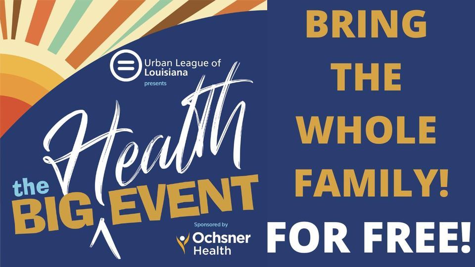 The Urban League of Louisiana presents the first-ever Big Health Event along with presenting sponsor Ochsner Health and sponsors Aetna and Louisiana Healthcare Connections. This FREE event will promote health and wellness for adults and children to positively impact families in Louisiana.Family members of all ages will have the opportunity to