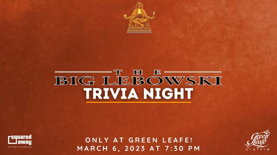 Join us at Green Leafe on Monday, 3/6 for Speedquizzing Trivia on the 1993 cult classic, The Big Lebowski!Trivia Rounds will be announced on the day of the event and the fun starts at 7:30! Along with $8 Burger Night at The Leafe!