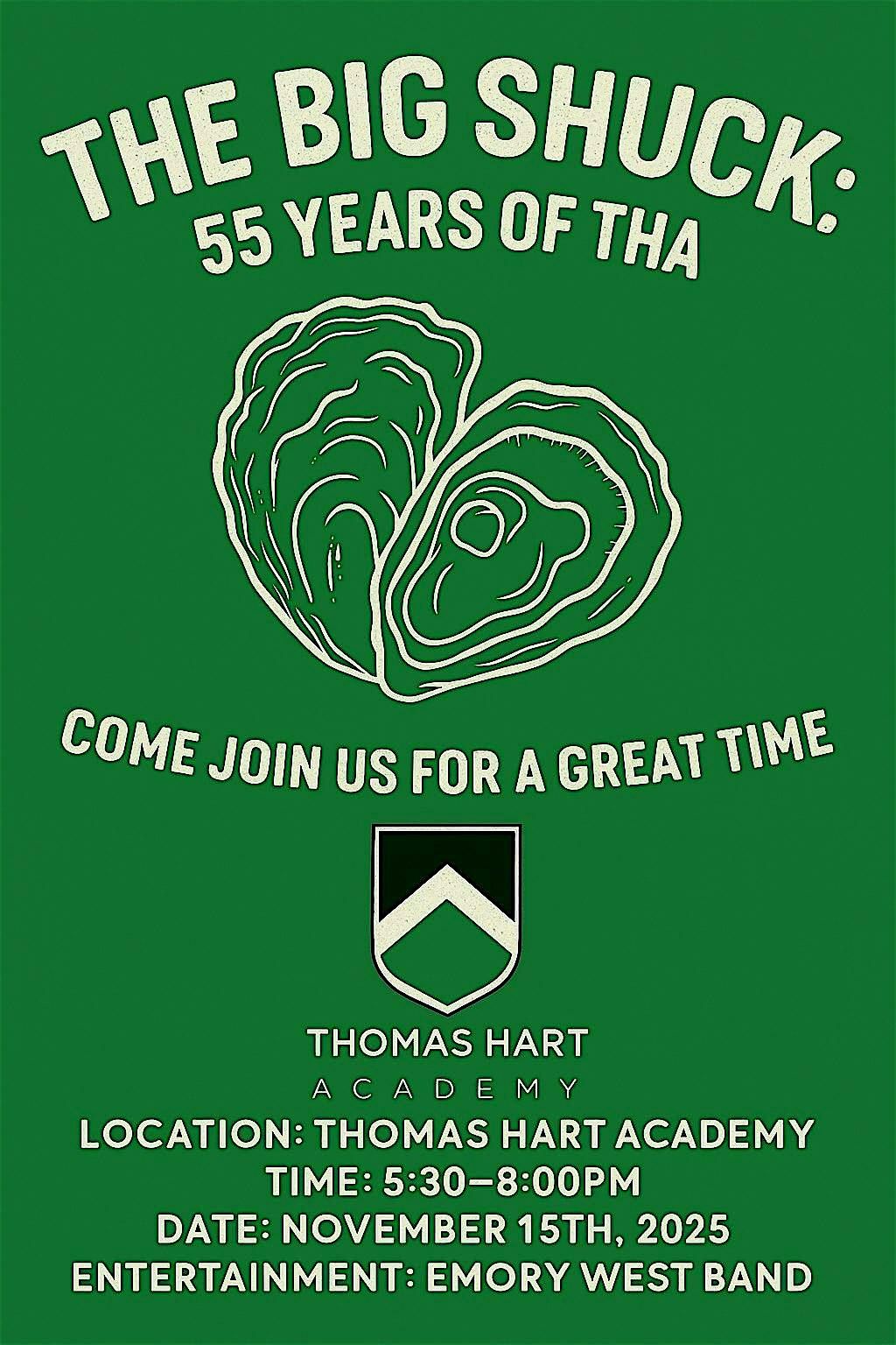 Get ready to dive into a fun night of Thomas Hart Academy with The Big Shuck: 55 Years of THA - it's going to be a blast!