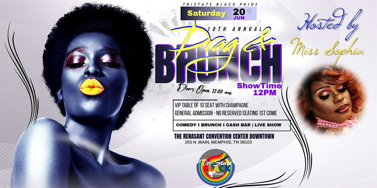 Saturday's Brunch just got bigger & better! TriState Black Pride presents the 10th Annual "DRAG & BRUNCH" in Memphis, TN hosted by The Comedian Miss Sophia from Atlanta, GA, and Monica Lusk.