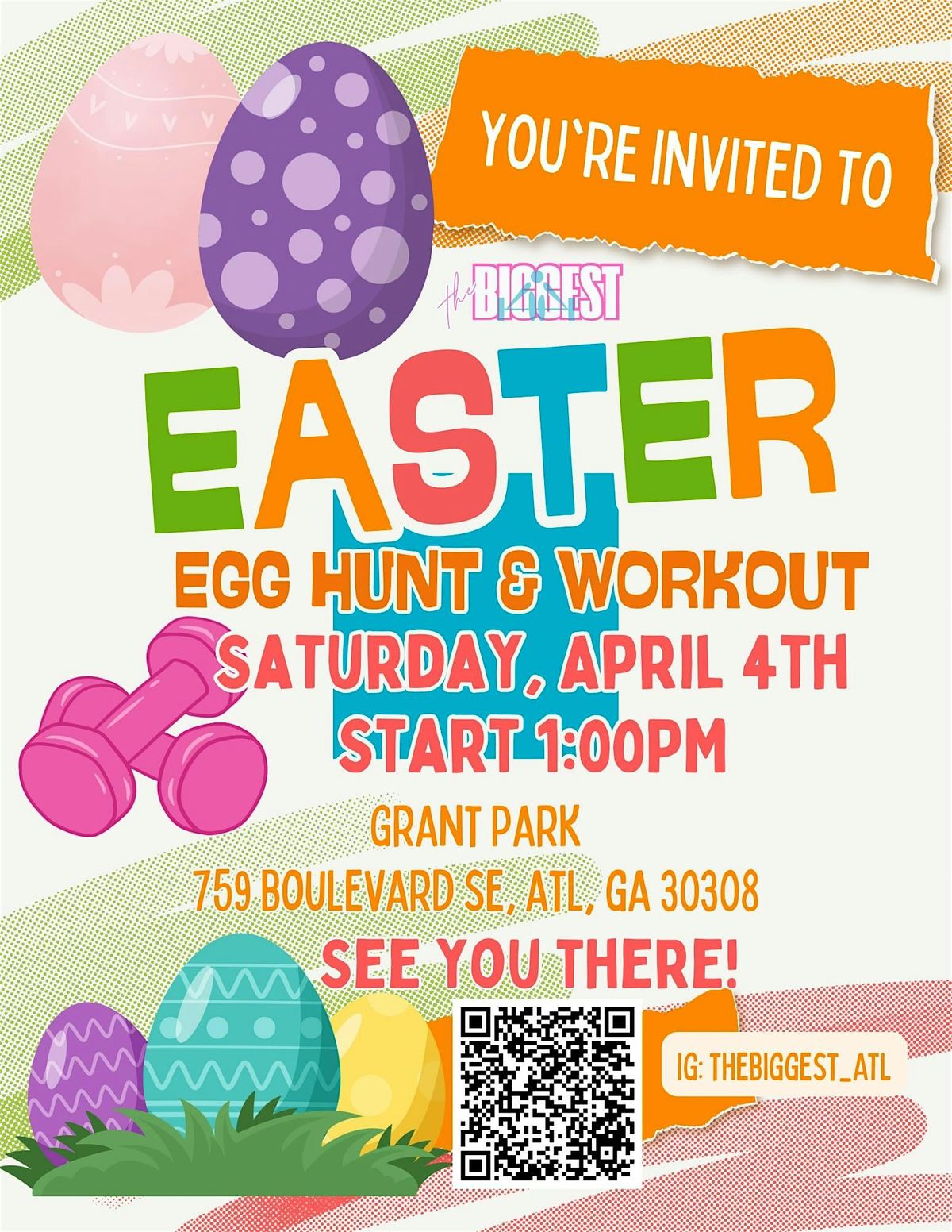 We're taking Easter weekend to a whole new level! Join us for THE BIGGEST Easter Egg Hunt paired with a high-energy full body HIIT workout that'll have you sweating, smiling and celebrating spring in true ATL fashion.