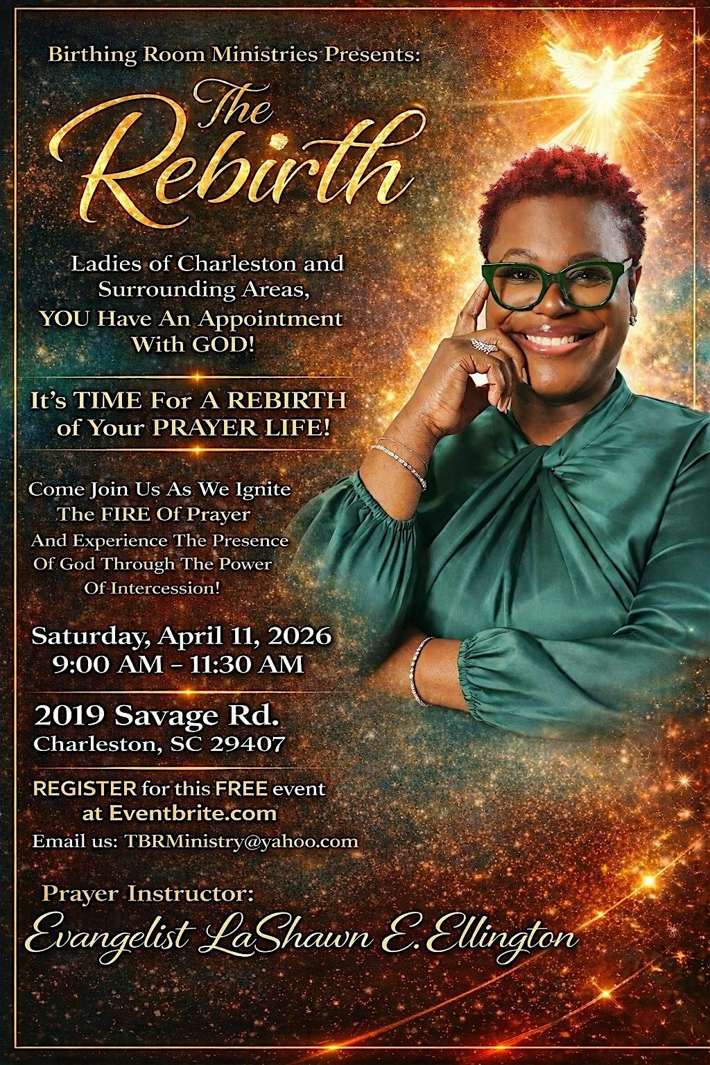 Ladies of Charleston and Surrounding Areas, YOU Have An Appointment With GOD! It's TIME For A REBIRTH of Your PRAYER LIFE! Come Join Us As We Ignite The FIRE Of Prayer And Experience The Presence Of God Through The Power Of Intercession!