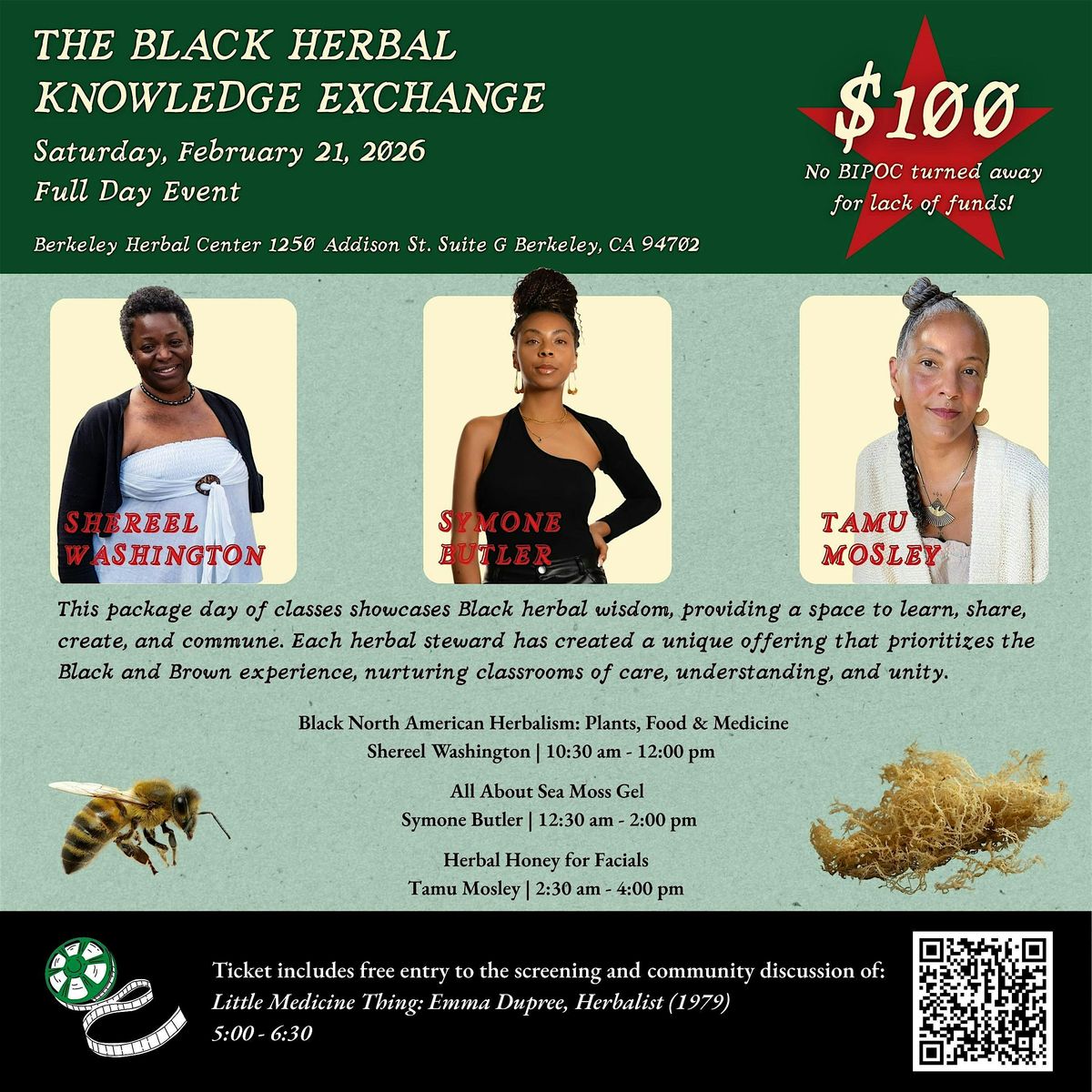 The Berkeley Herbal Center welcomes you to the first ever Black Herbal Knowledge exchange. This package day of classes showcases Black herbal wisdom, providing a space to learn, share, create, and commune. Each steward will provide a unique offering that prioritizes the Black and Brown experience, nurturing classrooms of care, understanding, and unity. By attending, participants are collectively creating an expectation in herbal schools across the state to honor the history and legacy of Black and Brown people in herbalism and beyond. We look forward to sharing space with you at this unprecedented experience in the Bay Area.