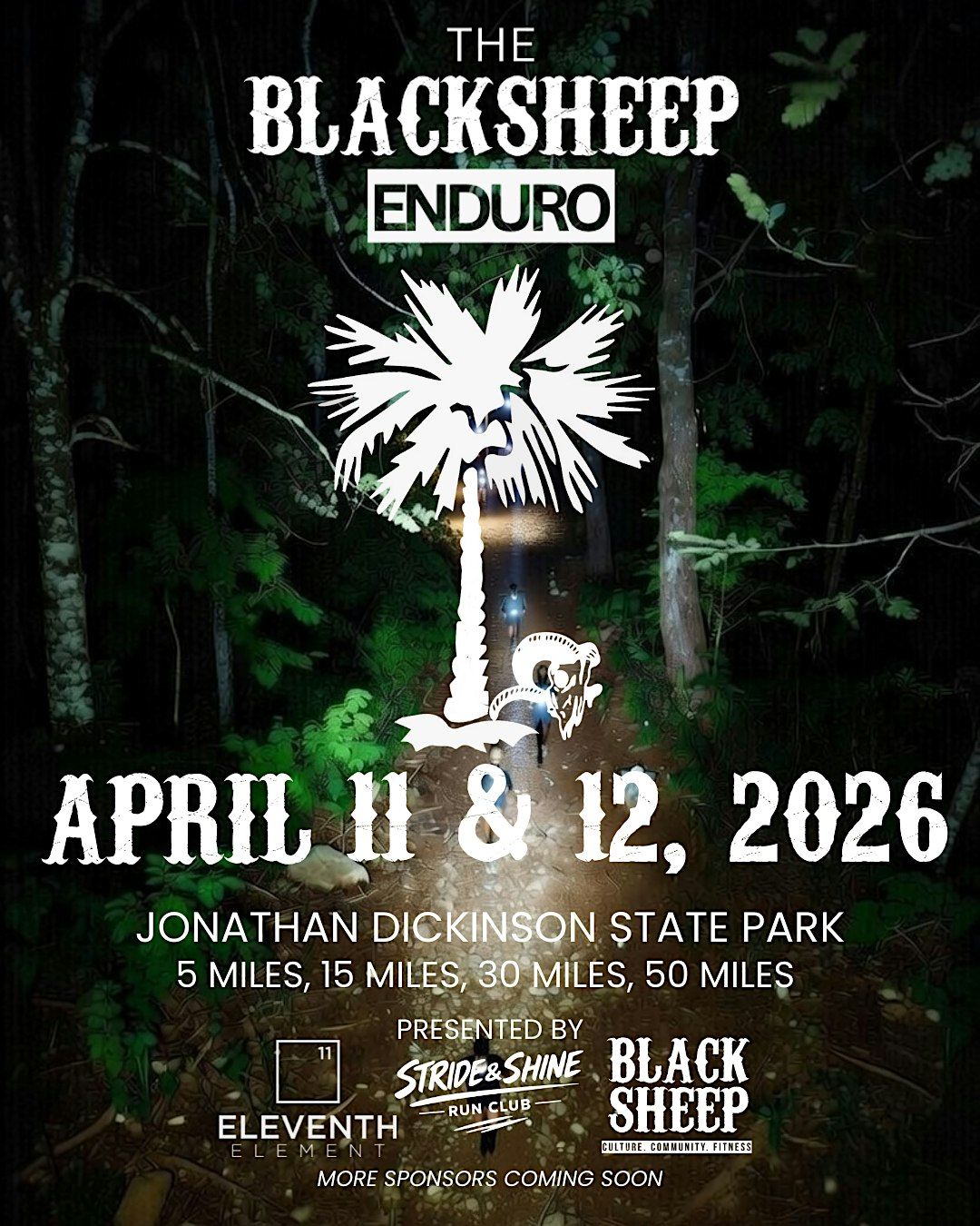 The Blacksheep Enduro returns April 11–12 at Jonathan Dickinson State Park for a true test of endurance, resilience, and mental toughness. Runners can choose from 5, 15, 30, or 50 miles, all completed on a 5-mile loop course—a controlled yet relentless format where the challenge builds with every lap.
