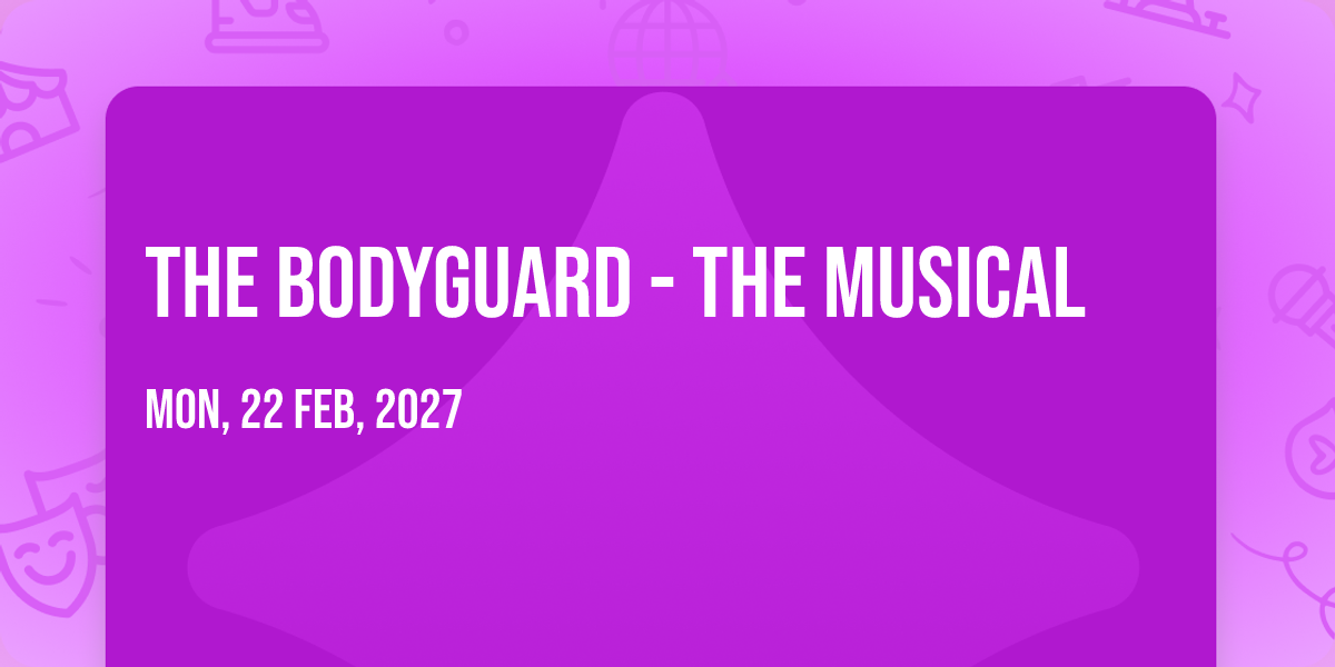 π Be part of history at The Bodyguard - The Musical, an extraordinary gathering that will captivate your imagination! ποΈ The prestigious Centennial Hall - AZ in Tucson, AZ sets the stage for an unforgettable experience on February 22nd, 2027 at 05:00 PM. β¨ They are bringing together the finest elements of entertainment and innovation to create moments that will take your breath away. From the moment you arrive, you'll be immersed in an atmosphere of wonder and excitement. π― This carefully planned event ensures every guest experiences something truly special. π Early booking is recommended for this must-attend event of the season!http://maps.seatics.com/CentennialHallAZ_EndStage_2025-08-06_2025-08-06_0230_08062025_090737_SVGC_tn.png