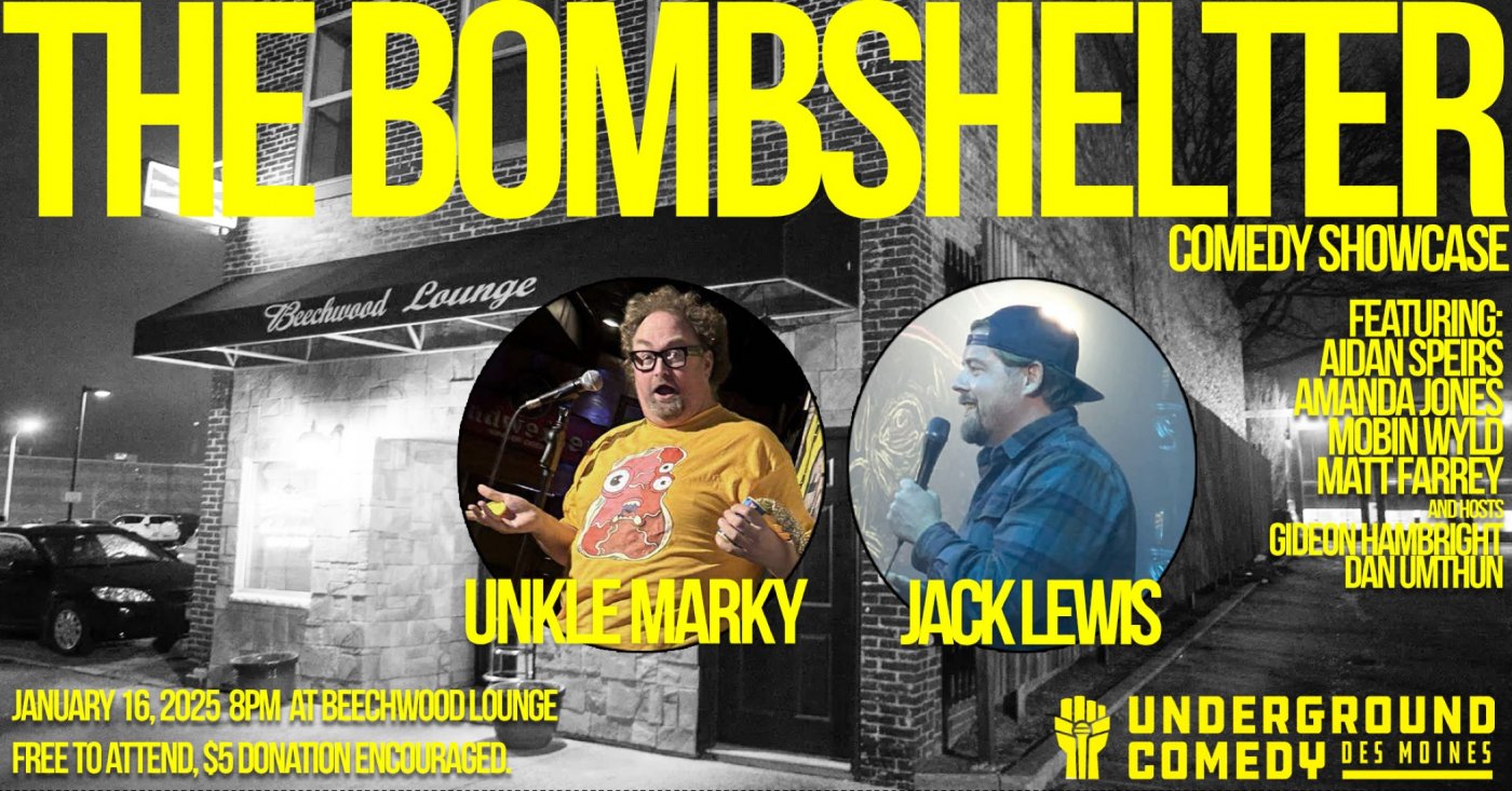 A high caliber comedy show of some of the best comics in Des Moines or anywhere else: the Bombshelter at the Beechwood is a Des Moines legacy comedy show!