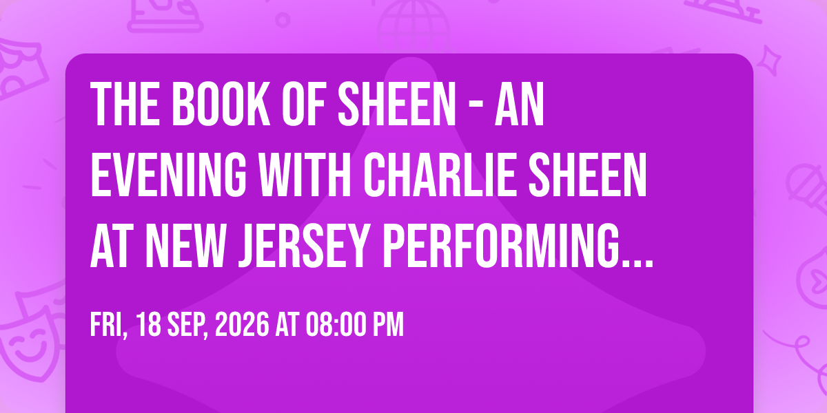 ✨ Discover the extraordinary at The Book of Sheen - An Evening with Charlie Sheen at New Jersey Performing Arts Center, where magic meets reality in ways you've never imagined! 🏛️ Set in New Jersey Performing Arts Center nestled in bustling Newark, NJ, this event promises to be a landmark occasion. 📅 Taking place on September 18th, 2026 at 08:00 PM, it's going to create an atmosphere where every moment becomes a cherished memory. 🌟 Immerse yourself in an experience crafted with attention to every detail, designed to surprise and delight at every turn. They have worked tirelessly to ensure this event exceeds all expectations, bringing together elements of entertainment, innovation, and pure joy. 🎊 Don't miss your chance to be part of this remarkable journey!