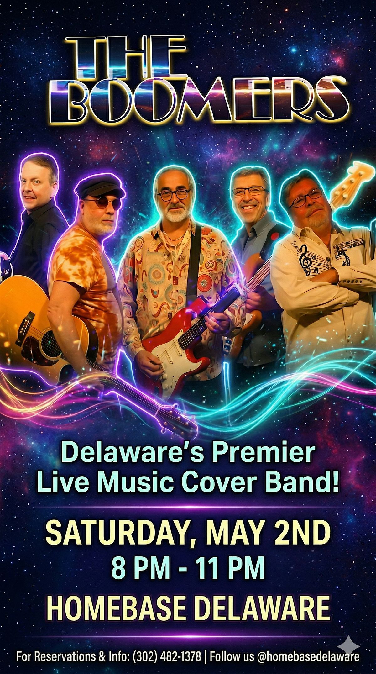 Get ready to rock! On Saturday, May 2nd, HomeBase Delaware is hosting The Boomers, one of the region's most beloved live music acts. Known for their infectious energy and pitch-perfect renditions of classic hits, The Boomers focus on the danceable rock and roll that defined generations.