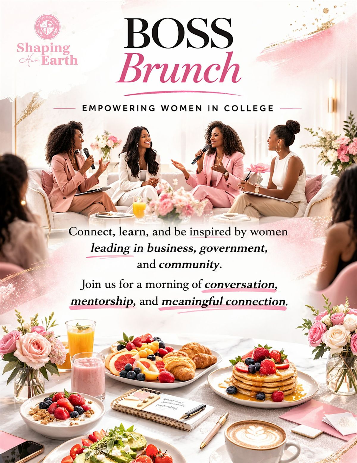 The BOSS Brunch is an empowering gathering designed to connect college women with inspiring professional women who are building careers, leading in their fields, and creating impact in their communities.