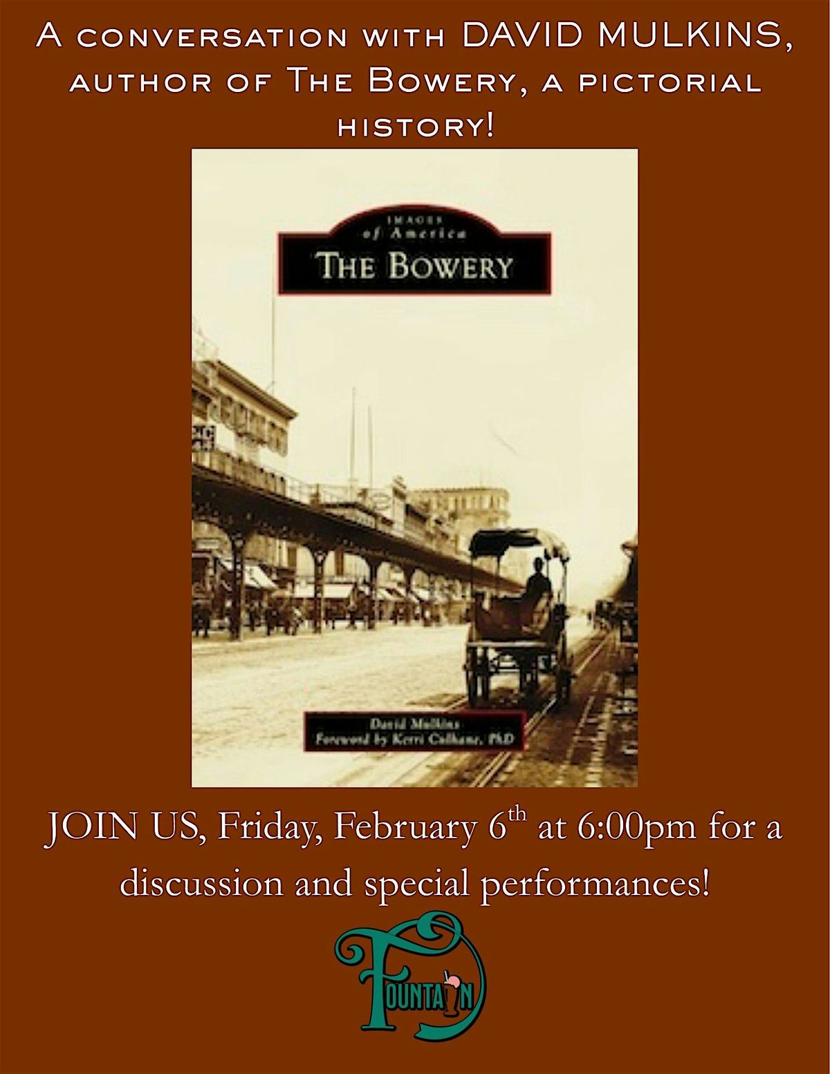 Join us in person at the Fountain Bookshop for a laid-back chat with David Mulkins about his latest work, THE BOWERY. It’s a great chance to dive deep into the stories behind the book and ask your burning questions. Come hang out, enjoy good conversation, and maybe discover a few surprises along the way!
