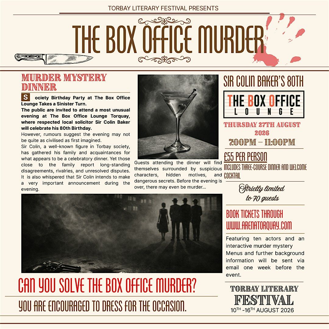 The public are invited to attend a most unusual evening at The Box Office Lounge, Torquay, where respected local solicitor Sir Colin Baker will celebrate his 80th Birthday. However, rumours suggest the evening may not be quite as civilised as first imagined.