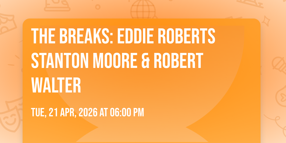🌟 Be part of history at The Breaks: Eddie Roberts Stanton Moore & Robert Walter, an extraordinary gathering that will captivate your imagination! 🏛️ The prestigious Toulouse Theatre in New Orleans, LA sets the stage for an unforgettable experience on April 21st, 2026 at 06:00 PM. ✨ They are bringing together the finest elements of entertainment and innovation to create moments that will take your breath away. From the moment you arrive, you'll be immersed in an atmosphere of wonder and excitement. 🎯 This carefully planned event ensures every guest experiences something truly special. 🎊 Early booking is recommended for this must-attend event of the season!http://maps.seatics.com/GeneralAdmissionEvent_VIP-GA_2021-02-02_2021-02-02_0918_03272025_110621_SVGC_tn.gif
